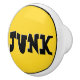 A place for everything and everything in its' place. That's a mantra I grew up with and was the inspiration for this new series of ceramic drawer & cabinet knobs. This one features a happy sunflower yellow round medallion w/a thin black border. In a fun & funky black font w/white highlights is the word "Junk". Perfect for kids rooms, bathrooms, workshop, more...