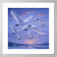 Graceful and powerful, these large migratory swans are depicted with an emphasis on movement, atmosphere, and the vast sense of space found in northern winter landscapes. Rather than focusing on strict scientific detail, the artwork conveys the calm, cold air and gentle rhythm of birds traveling together through the season.