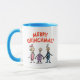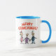 This heartwarming illustration captures the true meaning of Christmas! It features three colorful Whos of Whoville standing together, holding hands, and smiling with their eyes closed, looking like they are happily singing or swaying. They are dressed in unique, whimsical Whoville outfits (pink fringe, purple zigzag, blue stripes). Arching cheerfully above them in bold red text is the phrase: "MERRY GRINCHMAS!" This graphic perfectly embodies the communal and sweet spirit of the holidays!