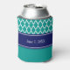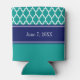Wht Moroccan #4 CB Navy Name Monogram Wedding Can Cooler