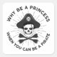 A pirate design that says why be a princess when you can be a pirate. This design looks really effective on these Stickers