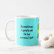 I am loving this mug. The silly dog and the quote are perfect for my personality. I use this everyday. The printing is perfect. This mug gets washed every day, sometimes by hand, sometimes in the dishwasher and the colors and lettering have never chipped, faded or been degraded in any way.