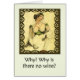 Ackermann 1800's fashion plate, woman laments, "Why, why is there no wine?" Inside is blank for your message. The perfect card for a wine enthusiast! Original concept by Angela Castillo.