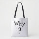 'Why?' This is a fun and creative black and white reversible tote bag with a big question 'why?' followed by a big question mark. One side is black and white, the other is white and black. Sometimes we just want to know 'why'... (You will probably be asked 'why what?' by everyone who sees you carrying this tote though...)