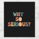 A playful and whimsical design featuring the phrase "Why so serious?" in a variety of multicolored, smiling fonts. The text is rendered in a dynamic and energetic style, evoking a sense of joy and lightheartedness.
