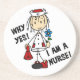 A cute knobby kneed cartoon nurse and text that reads Why Yes I Am A Nurse on nurse T-shirts, hoodies, mugs, key chains, magnets, cards, stickers, wall clocks, pillows, and other nurse apparel and gifts.
