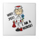 A cute knobby kneed cartoon nurse and text that reads Why Yes I Am A Nurse on nurse T-shirts, hoodies, mugs, key chains, magnets, cards, stickers, wall clocks, pillows, and other nurse apparel and gifts.