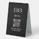 Upgrade your customer experience with our customisable Wi-Fi access display sign. Featuring a minimalist black and white template design with a scannable QR code for effortless connectivity, this professional dual-sided tabletop sign allows guests to connect to your network without the hassle of manually entering passwords. Perfect for any business space, the sign prominently displays the network name and password for those who need it. Personalise with your logo to enhance brand visibility. Made with durable materials, it's designed to blend seamlessly into any professional setting.