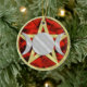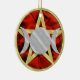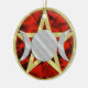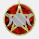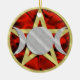 Brilliant red ornament to decorate tree, home or wear as a necklace pendant. Gold pentagram or pentacle, with the silver moon phases of the Triple Goddess