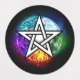 Artistically drawn, luminous pentagram with five magical elements, water, earth, fire, astral, air on black background. Wiccan pentagram. Wicca