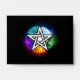 Artistically drawn, luminous pentagram with five magical elements, water, earth, fire, astral, air on black background. Wiccan pentagram. Wicca