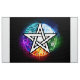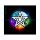 Artistically drawn, luminous pentagram with five magical elements, water, earth, fire, astral, air on black background. Wiccan pentagram. Wicca