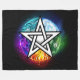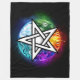Artistically drawn, luminous pentagram with five magical elements, water, earth, fire, astral, air on black background. Wiccan pentagram. Wicca