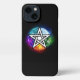 Artistically drawn, luminous pentagram with five magical elements, water, earth, fire, astral, air on black background. Wiccan pentagram. Wicca