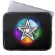 Artistically drawn, luminous pentagram with five magical elements, water, earth, fire, astral, air on black background. Wiccan pentagram. Wicca