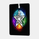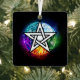 Artistically drawn, luminous pentagram with five magical elements, water, earth, fire, astral, air on black background. Wiccan pentagram. Wicca