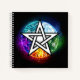 Artistically drawn, luminous pentagram with five magical elements, water, earth, fire, astral, air on black background. Wiccan pentagram. Wicca