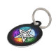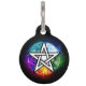 Artistically drawn, luminous pentagram with five magical elements, water, earth, fire, astral, air on black background. Wiccan pentagram. Wicca
