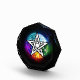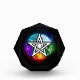 Artistically drawn, luminous pentagram with five magical elements, water, earth, fire, astral, air on black background. Wiccan pentagram. Wicca