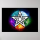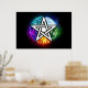 Artistically drawn, luminous pentagram with five magical elements, water, earth, fire, astral, air on black background. Wiccan pentagram. Wicca
