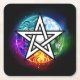 Artistically drawn, luminous pentagram with five magical elements, water, earth, fire, astral, air on black background. Wiccan pentagram. Wicca