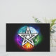 Artistically drawn, luminous pentagram with five magical elements, water, earth, fire, astral, air on black background. Wiccan pentagram. Wicca