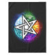Artistically drawn, luminous pentagram with five magical elements, water, earth, fire, astral, air on black background. Wiccan pentagram. Wicca