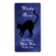 An eerie black cat in purple, violet fog, decorates this personalised wine label for Halloween bottles. It is easy to customise to match beer or water bottles.