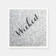 "Wicked" written in fancy ribbon script decorates this silver sparkly napkin, making it perfect for adding a bit of glamour to your Halloween Party.