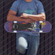 Wicked skull with ram horns, fangs and dripping blood is holding a lightning bolt. This is one evil skull that will make your skateboard a wicked ride.