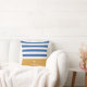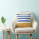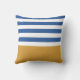 Wide Blue Horizontal Stripes Gold Name and Daisy Cushion