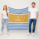 Wide Blue Horizontal Stripes Gold Name and Daisy Fleece Blanket