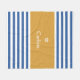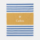 A modern wide horizontal stripes pattern fleece blanket in blue and gold. Personalise by adding your name beneath the chic retro daisy logo.