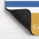 A modern wide horizontal stripes pattern mousepad in blue and gold. Personalize by adding your name beneath the chic retro daisy logo.