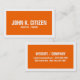Bold, big border business card. Simple, strong and impactful design. Large plain white border and large bold text on orange background.