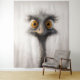 Wide-Eyed Ostrich Cartoon Portrait Tapestry