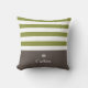 Wide Green Horizontal Stripes Brown Name Daisy Cushion