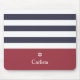 Wide Navy Blue Horizontal Stripes Red Name Daisy Mouse Mat