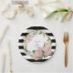 Looking for a modern, bold black and white wide striped background and romantic blush pink floral wreath themed wedding stationery, bridal shower, and reception decor products to make it easy to pull off? We had you in mind when we created this stunningly pretty floral design. Created from hand painted artwork by artist and designer, Audrey Jeanne Roberts. A loose, painterly blush pink hydrangea wreath with roses and succulent leaves. The large blush pink roses are elegant and modern when paired with succulent leaves in grey mint green. Your names and wedding date are easily changed out using the template field.