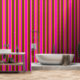 Wallpaper with vertical stripes. Light orange, dark pink and golden brown colors in stripes that vary in width.