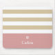 Wide Tan Horizontal Stripes Pink Name and Daisy Mouse Mat