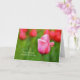 A sentimental wedding anniversary card for your wife with a beautiful photograph of a single pink tulip in a field of smaller red tulips. Front Reads: My Wife, you are the only one for me.