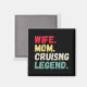 She is most proud of being these three things: wife, mum, cruising legend. She knows how to get the best perks, gain the most points and barter for the fanciest cabin on the best cruise line so show off all her loves in this fun retro vintage style magnet. A great gift for a wife and mum who loves cruising, cruise ships, travel and her family.