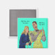 Funny magnet - man wears apron, wife ties it for him. Add whatever funny text you want. Retro 1950 look.