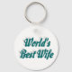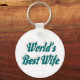 Key chain with World's best wife in 3D blue-green text. Round and square key chains available in several sizes.