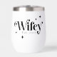 Thermal wine tumbler with decorative text "wifey" in an elegant retro display font, along with retro stars and the name or year below.