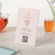 Blush, rose gold background. Personalise and add your business logo, name, wifi details, qr code to connect.