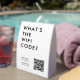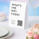This stylish white paper table tent tabletop sign provides a clean and modern way for customers or guests to access your wifi network instantly with bold typography quote "What's the WiFi Code?". The design features a central QR code area that can be linked to your wifi details so users can scan to connect without typing a password. Enter your network name and any custom instructions that fit your need. The minimalist layout keeps everything readable which works well for cafes, salons, studios, offices, rental properties, pop ups or event venues. Because the template is fully editable, it adapts easily to branding updates or new wifi information. A practical and polished solution that helps streamline customer access and elevates your in person experience.