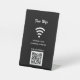 Black background. Personalise and add your wifi details, qr code to connect.
