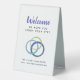 A small instructional sign to help your guests or patrons get connected with space at the top for your own logo or use the connecting blue rings logo provided instead. Help keep your guests informed of reception number and wifi connection, with this simple text instructional signage, simple welcome and add in your own network name and wifi access passcode. Ideal to add to guest bedrooms, hotel accommodation, holiday home rentals, Airbnb's, shops, cafes and restaurants. Logo and design by www.mylittleeden.com on Zazzle.